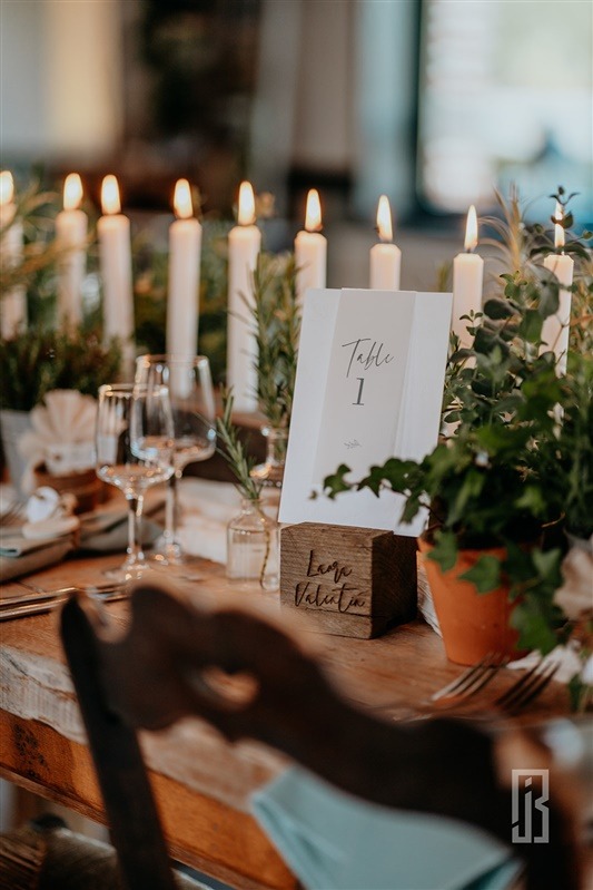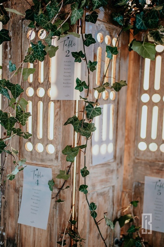 L’ensemble de la papeterie, faire-part, plan de table, menu, étiquette porte noms et numéros de tables, ont été choisis et réalisés par nos soins. Nous avons eu un gros coup de cœur pour ce papier provenant d’une gamme originale, créative et écologique ! Il est composé de 55% de nouvelles fibres FSC®, de 30 % de fibres recyclées et de 15 % d’autres matériaux organiques comme le kiwi, le café, l’olive ou des céréales. Les nuances délavées dans les tons de terre, très tendance, ont été inspirées par l’utilisation de fibres naturelles.