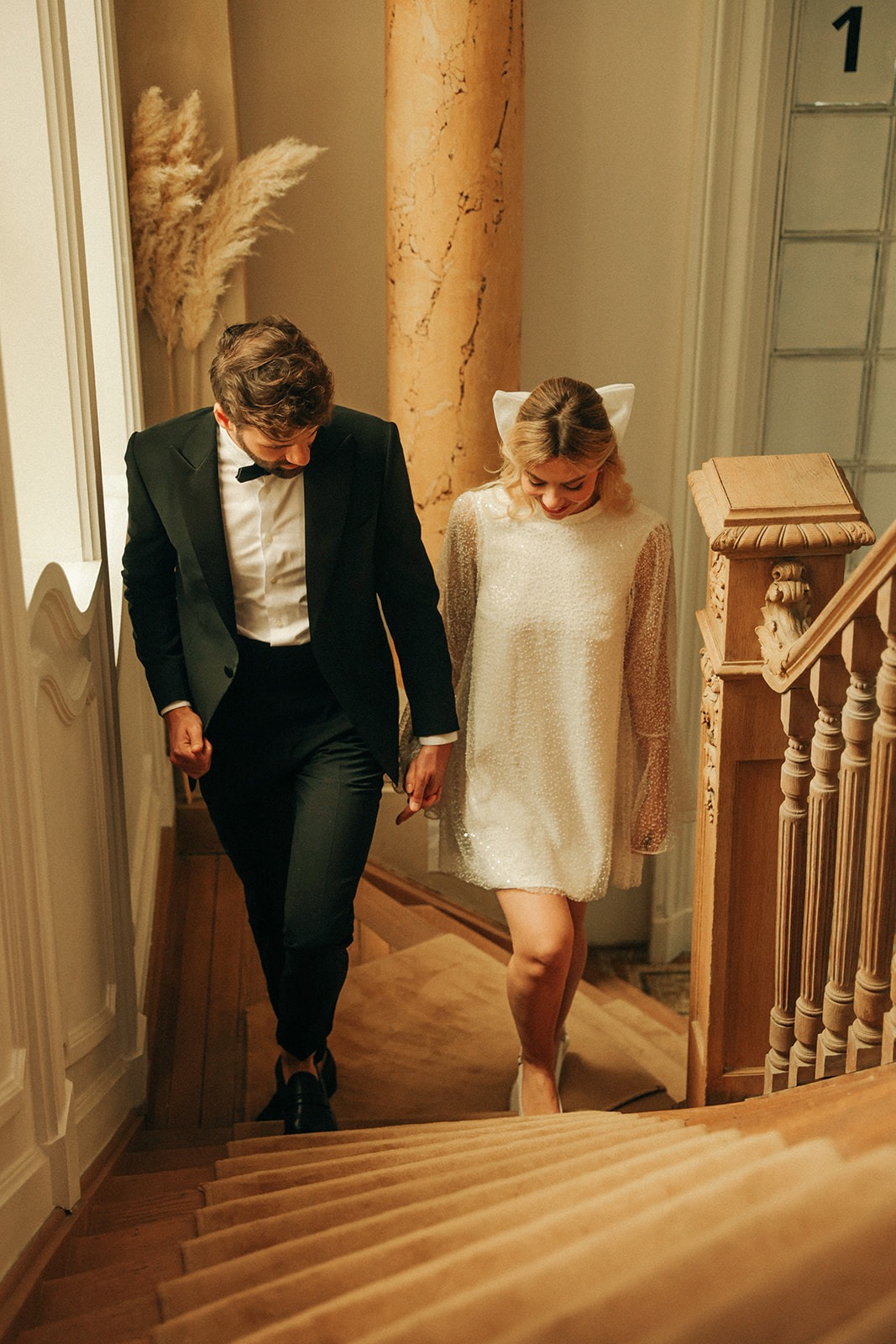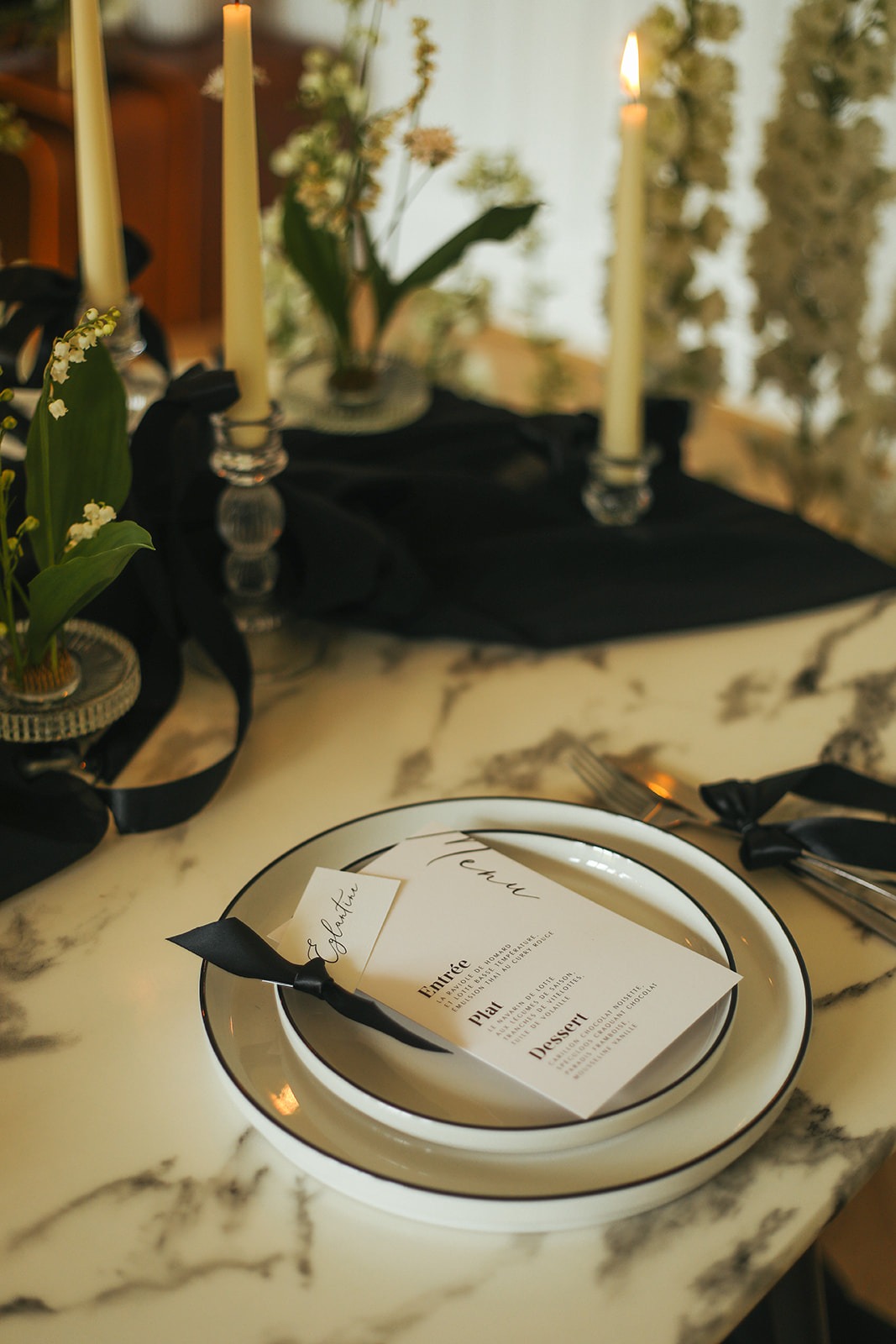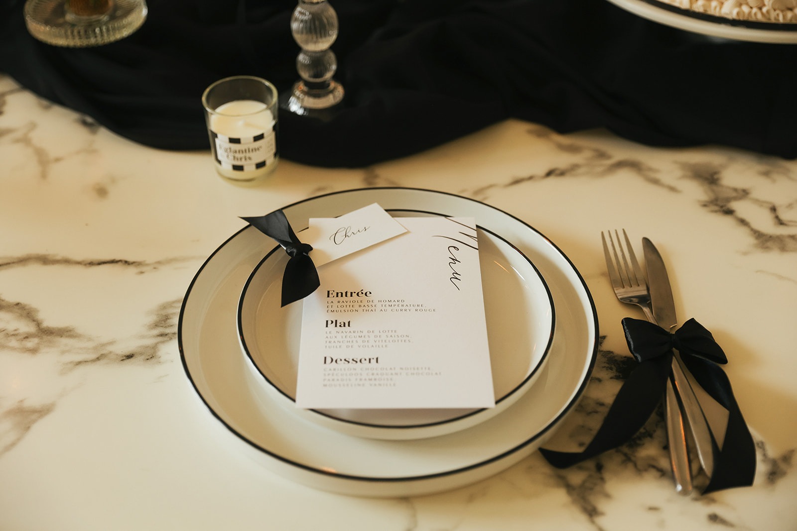 Églantine et Chris échangeront leurs vœux dans un mariage élégant aux accents des années Kennedy. Le thème noir et blanc à rayures, emblématique de cette époque, habillera chaque détail de cette journée spéciale.