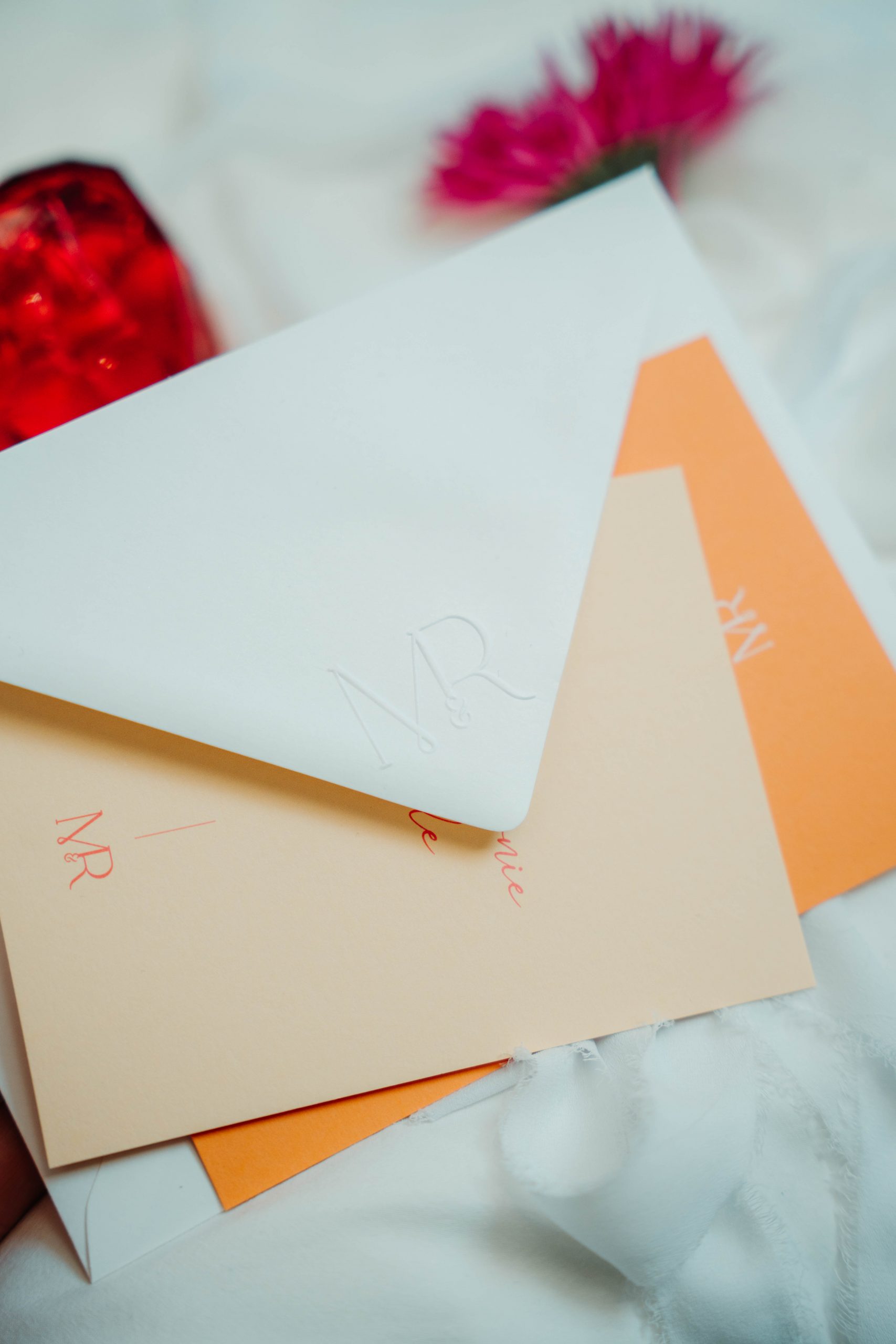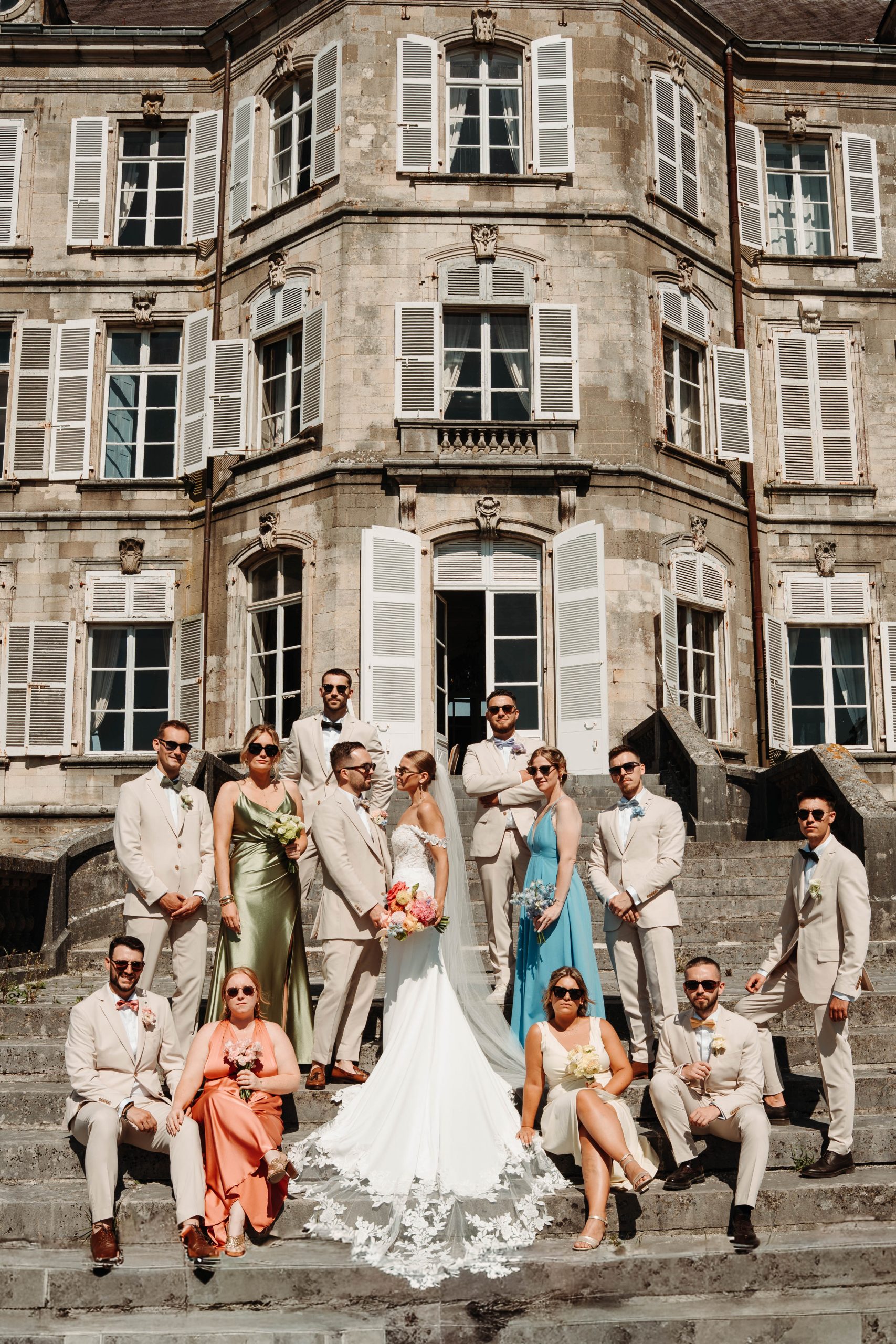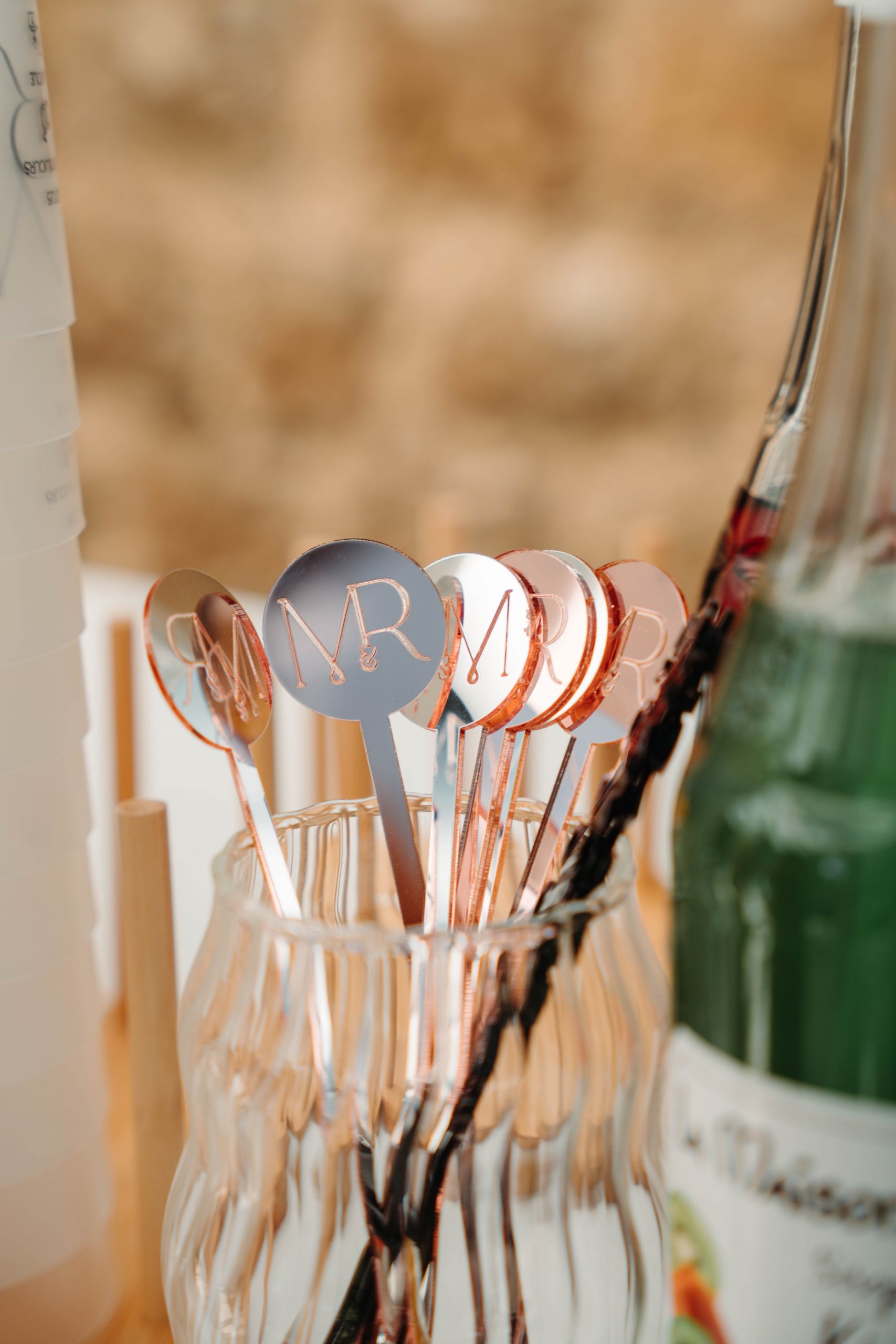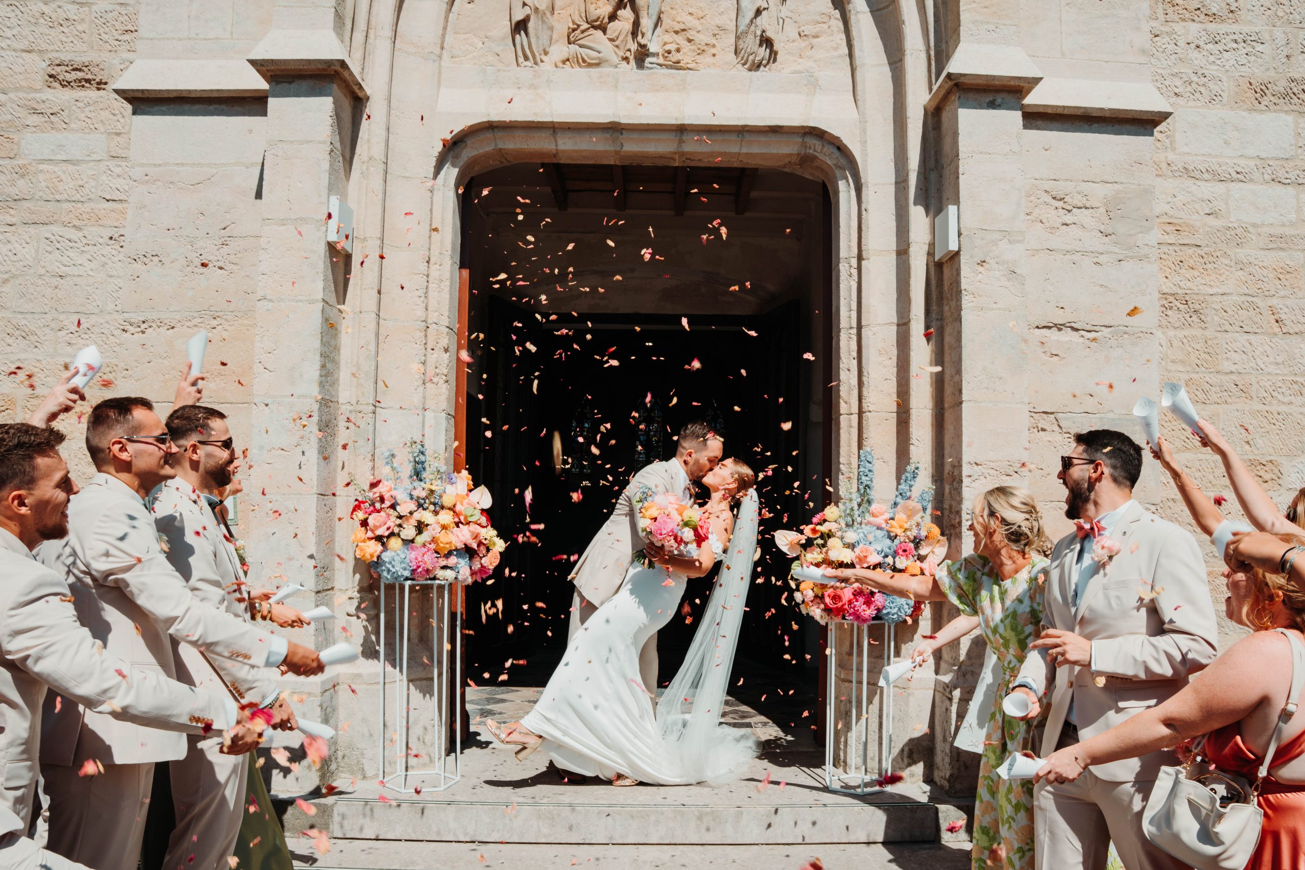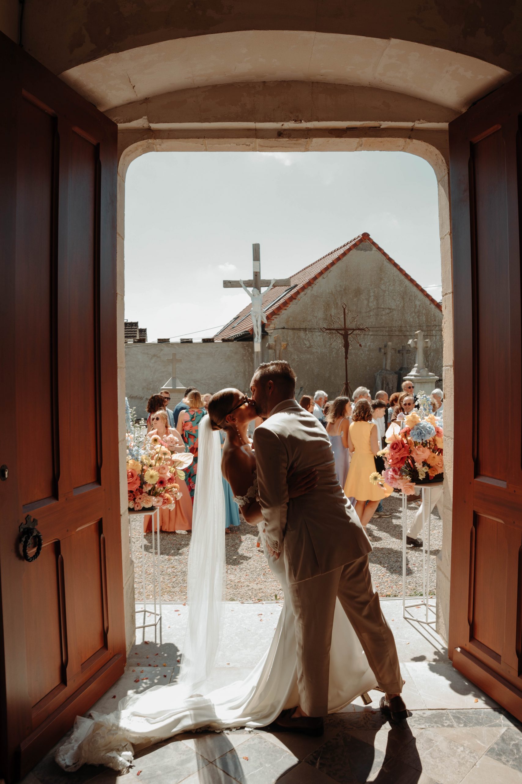 Marine, débordante d’énergie et de joie, a illuminé chaque instant, Rodolphe, plus discret mais tout aussi investi, a su garder son calme légendaire, tandis que Laurine de @viens on scene, avec son œil affûté pour le détail, a orchestré une décoration tout simplement incroyable : des couleurs en parfaite harmonie avec une papeterie absolument canon, pensée jusqu’au bout ! Les menus, parfaitement intégrés à la vaisselle, reprenaient la forme de l’assiette — un détail audacieux et élégant qui a fait sensation. Partout, le logo du mariage et le code couleur rappelaient leur univers, et même leur fidèle Titus a eu droit à un clin d’œil plein de tendresse. Après tant d’émotions et de préparatifs, tout s’est aligné : un mariage vibrant, raffiné et profondément à leur image ! tous nos vœux de bonheur !