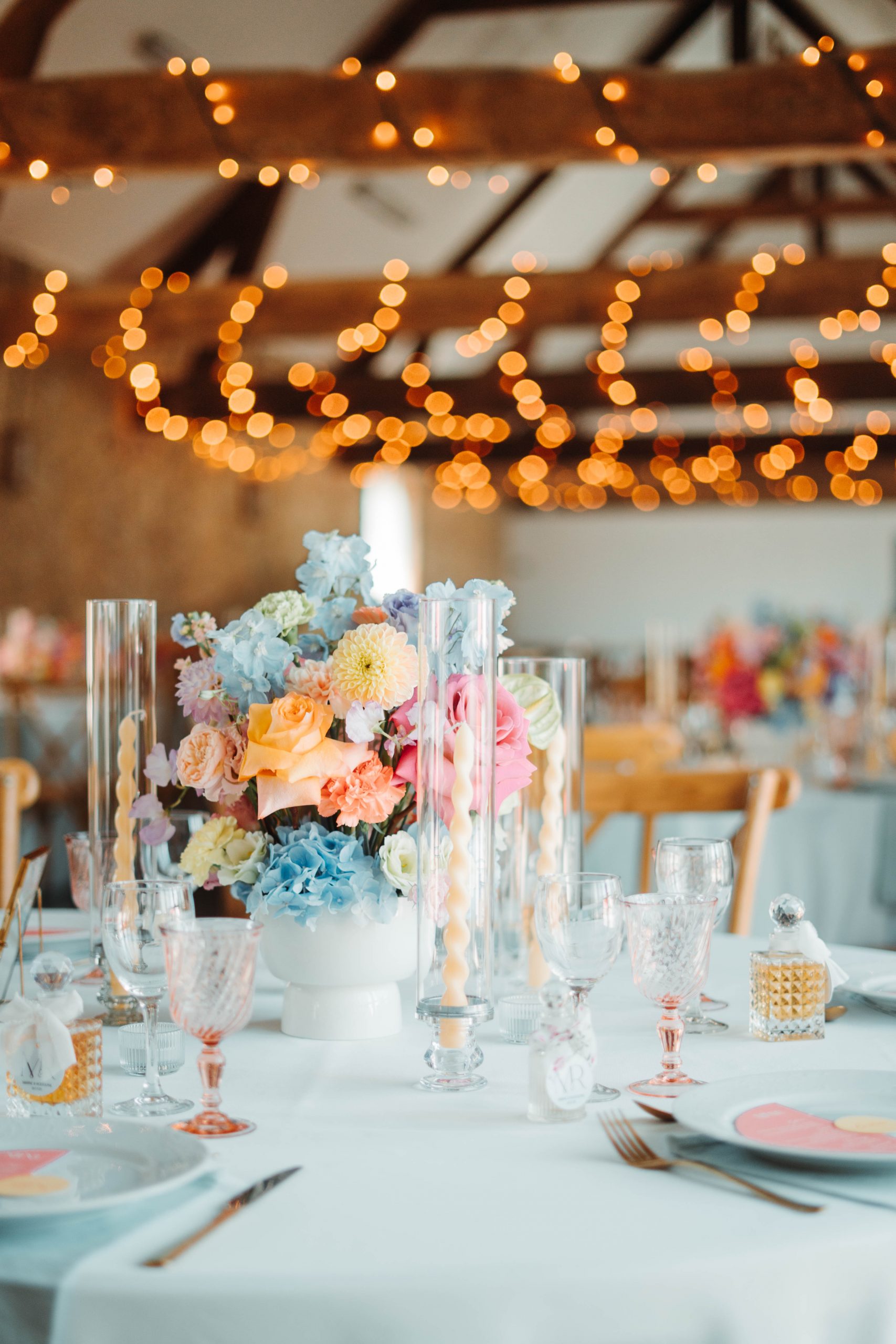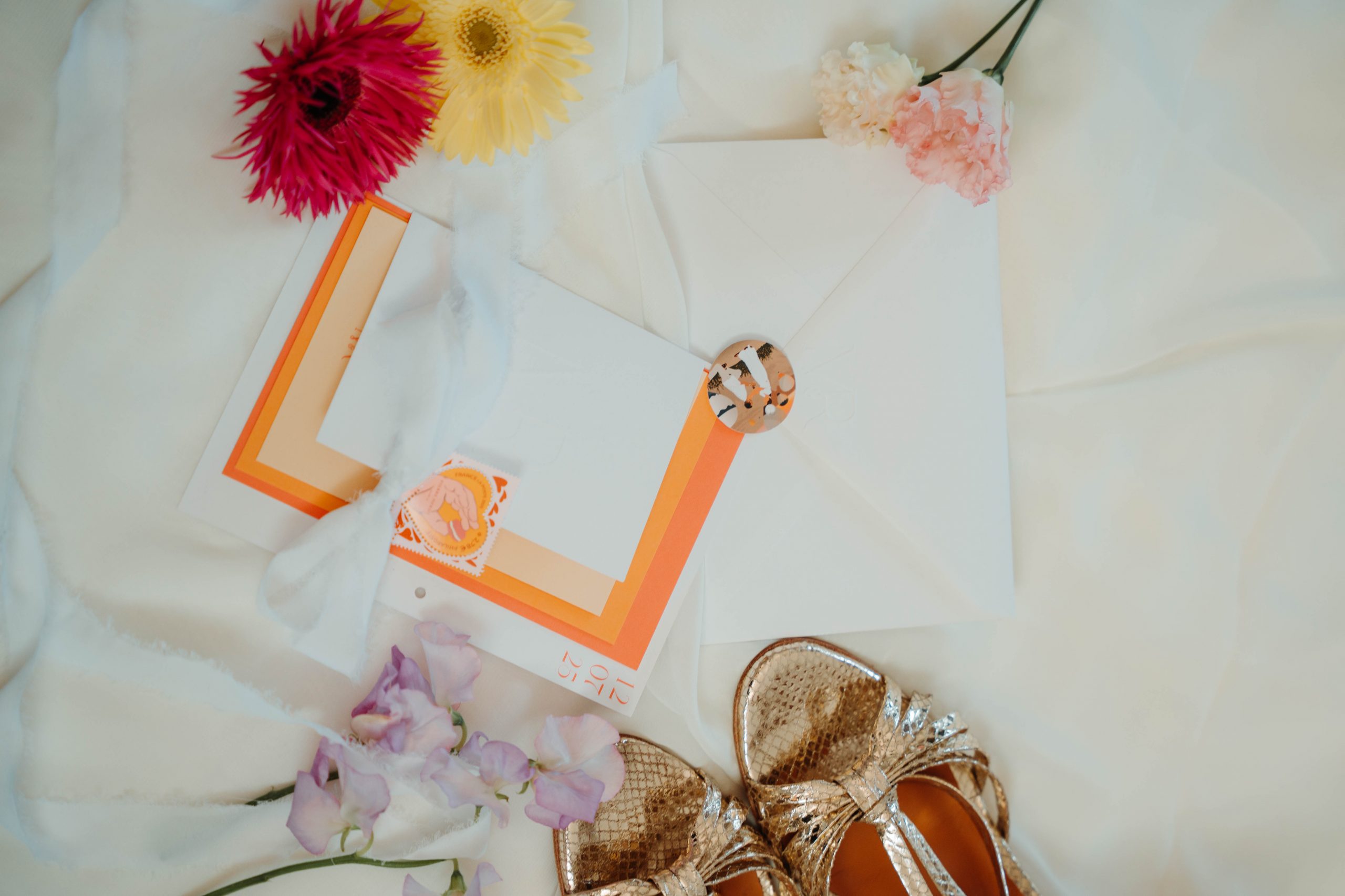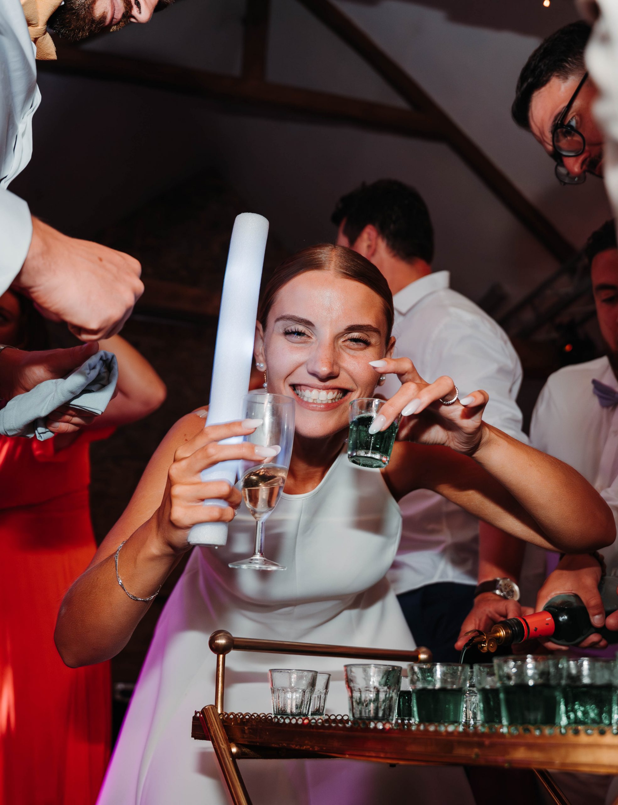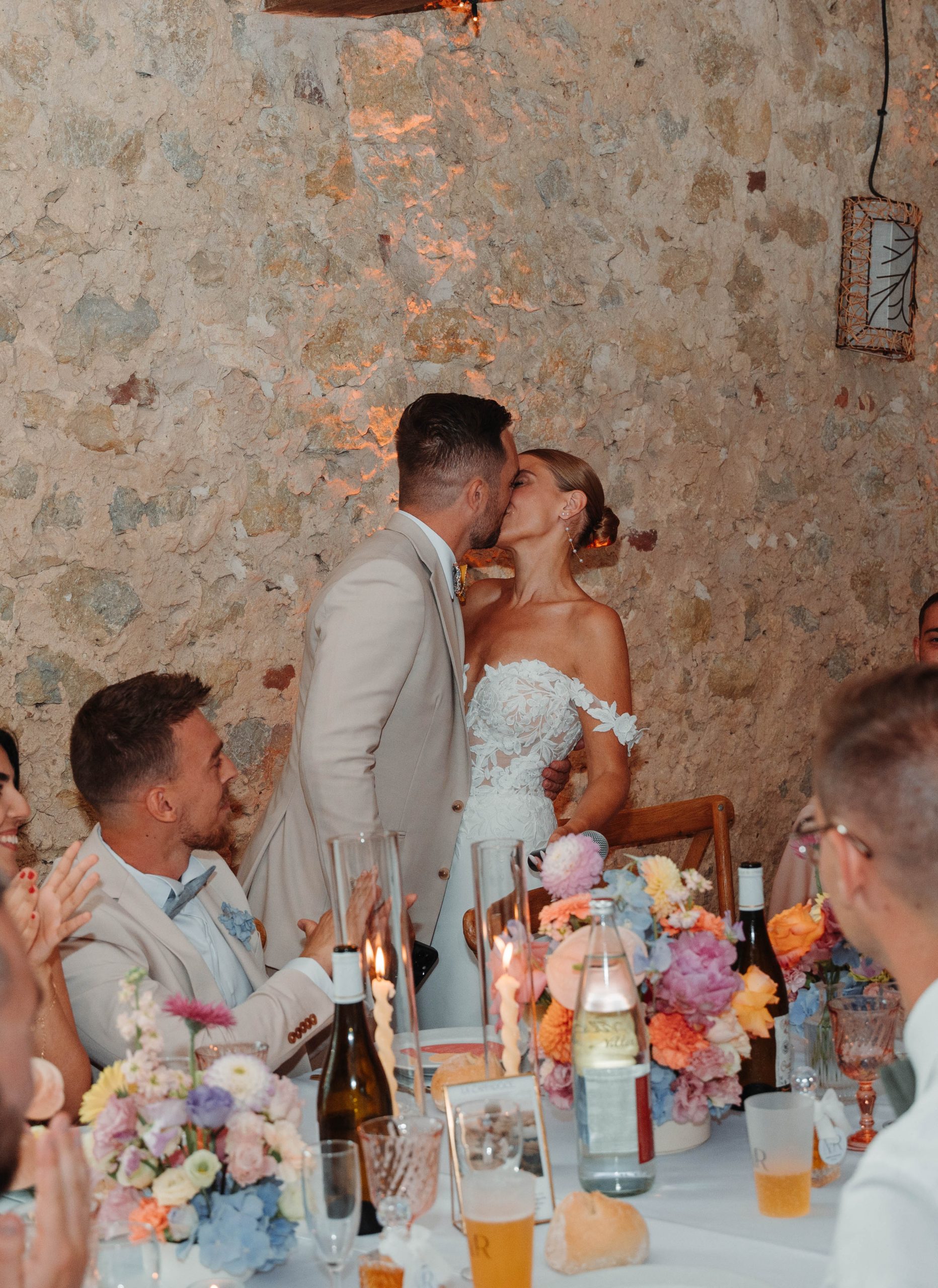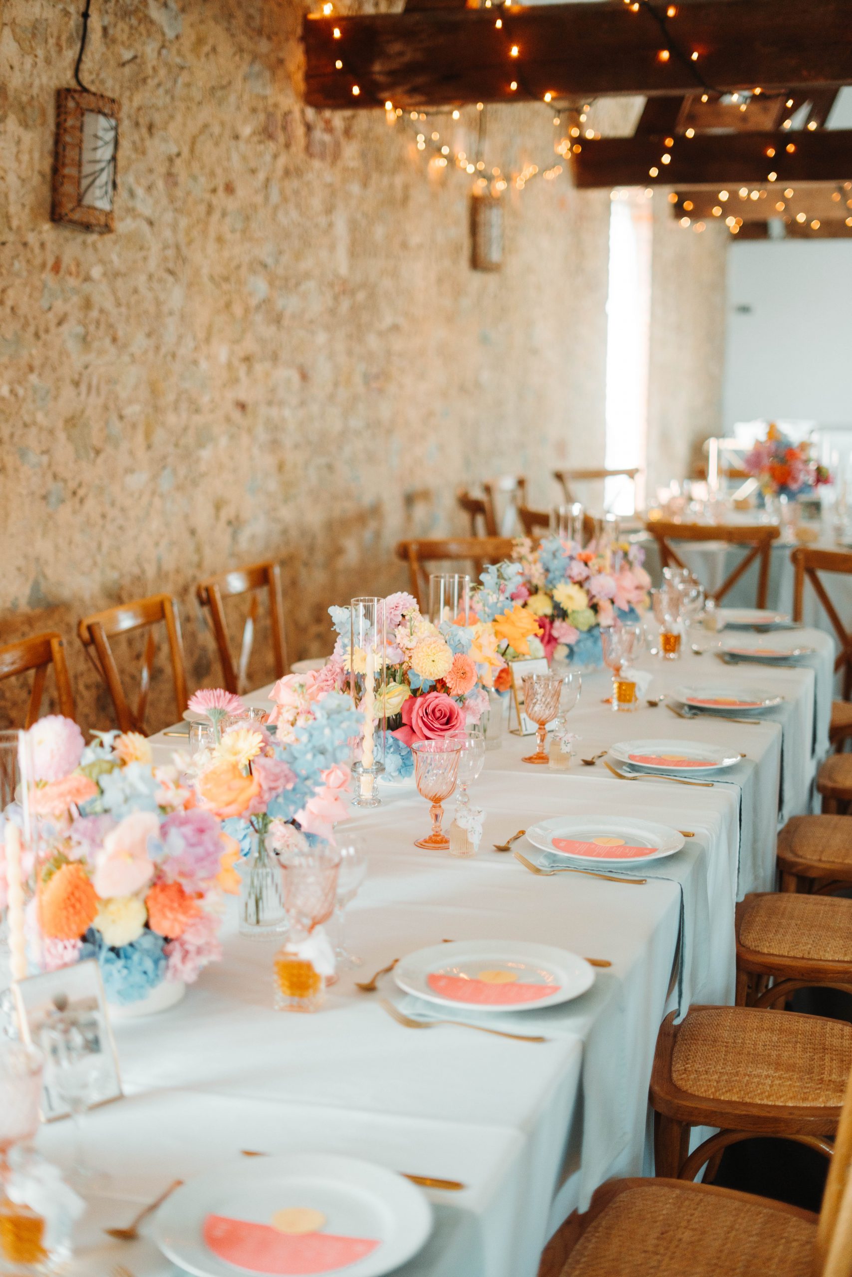 Marine, débordante d’énergie et de joie, a illuminé chaque instant, Rodolphe, plus discret mais tout aussi investi, a su garder son calme légendaire, tandis que Laurine de @viens on scene, avec son œil affûté pour le détail, a orchestré une décoration tout simplement incroyable : des couleurs en parfaite harmonie avec une papeterie absolument canon, pensée jusqu’au bout ! Les menus, parfaitement intégrés à la vaisselle, reprenaient la forme de l’assiette — un détail audacieux et élégant qui a fait sensation. Partout, le logo du mariage et le code couleur rappelaient leur univers, et même leur fidèle Titus a eu droit à un clin d’œil plein de tendresse. Après tant d’émotions et de préparatifs, tout s’est aligné : un mariage vibrant, raffiné et profondément à leur image ! tous nos vœux de bonheur !